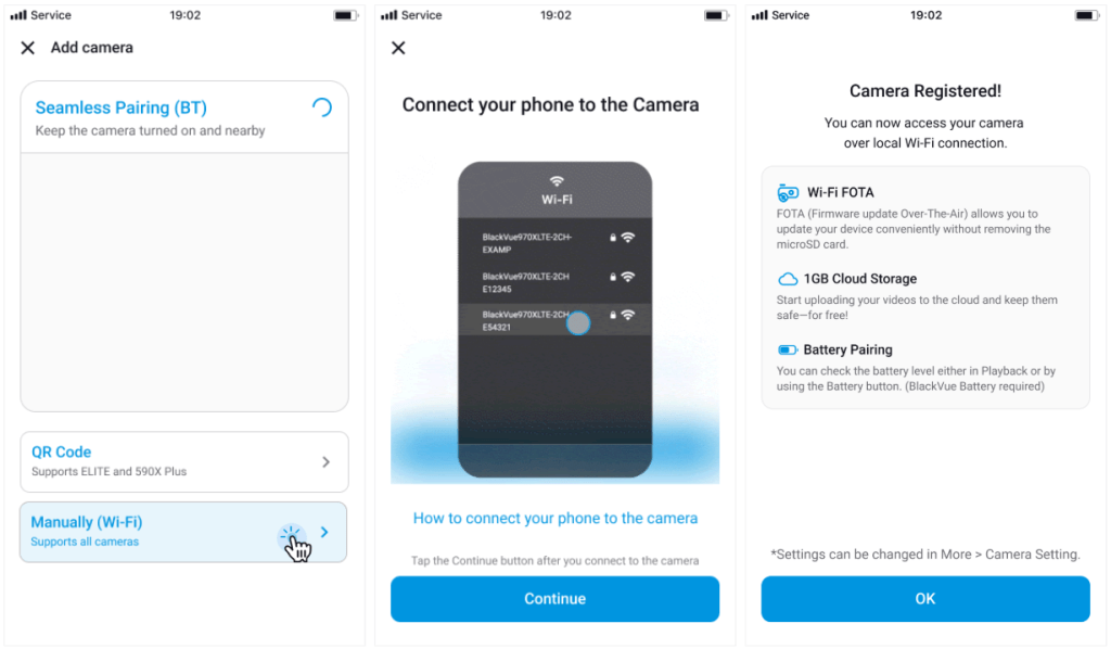 This method allows you to manually register the camera by entering its Wi-Fi information.