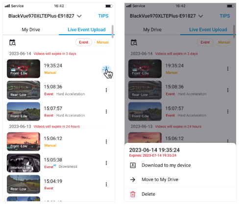 β Tip: To check the retention period of a video, tap the submenu of the video.